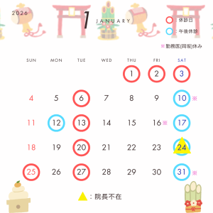 2026年1月休診日のお知らせです。